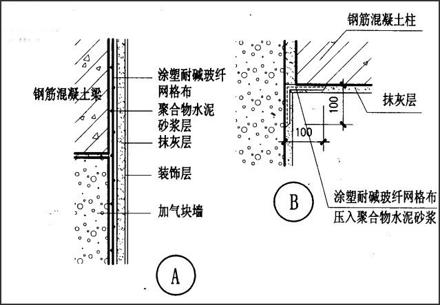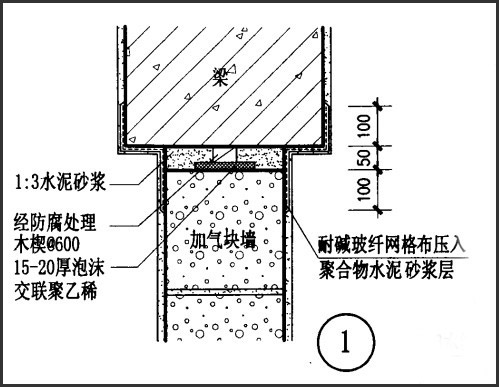 加氣混凝土砌塊設(shè)備網(wǎng)看圖來說明不同材料交界處構(gòu)造和防裂處理方法
