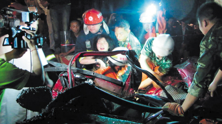 隨后,救援隊伍決定用兩臺吊車同時起吊。凌晨2時30分,泵體終于被吊起,被壓的小車上方出現(xiàn)了縫隙,現(xiàn)場群眾和消防官兵一起將小轎車拖了出來。隨即,救援人員實施了車頂整體切割,凌晨3時30分后,后排女乘客被救出。