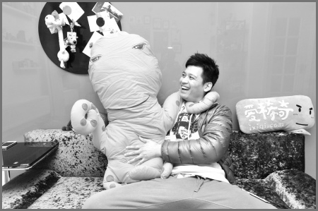 開(kāi)博客3個(gè)月之后,周毅設(shè)計(jì)了一個(gè)抱枕,取名章西西。這是一只章魚(yú)形狀的巨型抱枕,木訥的眼神傻傻惹人愛(ài),長(zhǎng)長(zhǎng)的觸角環(huán)繞周身,溫暖又搞怪。